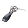 Schlüsselanhänger mit praktischem "Klick-Verschluss", Kunstlederschlaufe in Carbon Optik, 3 Schlüsselringe, Metall, Polyurethan, verchromt, matt, Carbon Optik