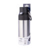 Thermoflasche mit Einhandverschluss, Doppelwand-Isolierung mit Vakuum, 550 ml Fassungsvermögen, lebensmittelecht, große, abschraubbare Öffnung zum Einfüllen von Eiswürfeln etc., mit Doppelkarabiner zur Befestigung an Taschen oder zum Einhängen von Schlüsseln, auslaufsicher, 201 Edelstahl, 304 Edelstahl, Kunststoff, matt, schwarz/silberfarben
