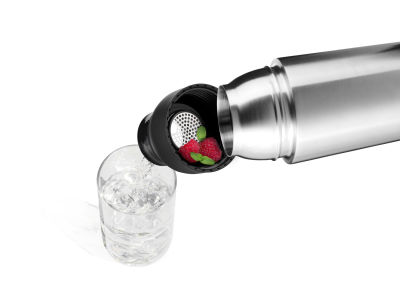 Die INFUSE+ Flasche mit doppelwandiger Vakuum-Isolierung hält Getränke bis zu 12 Stunden heiß oder 24 Stunden kalt – mit 550 ml perfekt für unterwegs, im Büro oder beim Sport. Der Einhandverschluss öffnet per Knopfdruck, das integrierte Sieb filtert Teebeutel, Zitrone oder Minzblätter beim Trinken zuverlässig mit. Dank der weiten Öffnung kannst du ganz einfach Eiswürfel einfüllen. Der rutschfeste Silikonboden sorgt für stabilen Stand, der Doppelkarabiner ermöglicht die Befestigung an Taschen oder Rucksäcken – oder wird kurzerhand zum Schlüsselhalter. Auslaufsicher, robust und in vier Farben erhältlich: Schwarz, Rot, Weiß oder Silber.