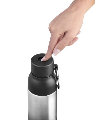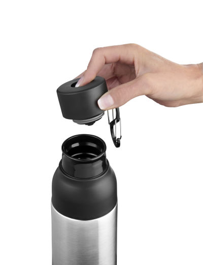 - Robust & stylisch – aus hochwertigem Edelstahl, matt pulverbeschichtet, mit praktischem Doppelkarabiner für unterwegs.