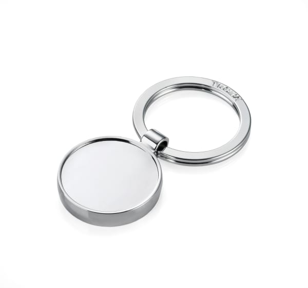 Schlüsselanhänger mit Motiv, rund, Epoxidharz, Metallguss, verchromt, glänzend, silberfarben