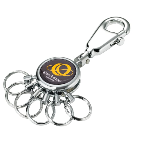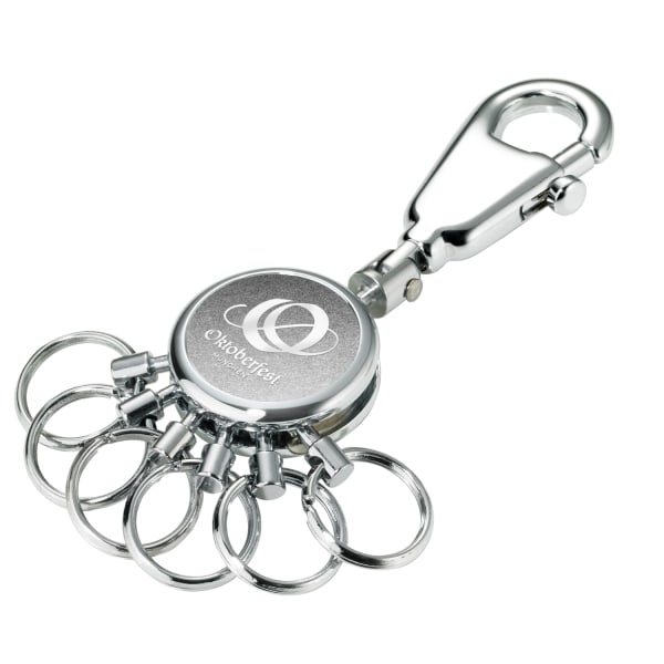 - Die Funktion unseres patentierten Key Organizers: Einfaches Aushaken und Austauschen der Ringe zur Nutzung einzelner Schlüssel – kann durch zusätzliche Ringe erweitert werden (Troika KR-KIT).
