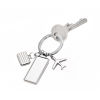 Schlüsselanhänger mit 3 Reise-Anhängern, mit Motiv, Flugzeug, Koffer, Gepäcklabel, Metallguss, verchromt, glänzend, silberfarben