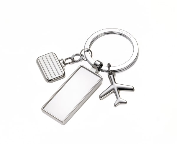 Flugbegleiter Wer viel unterwegs ist, hat ihn immer dabei. Schlüsselanhänger NEXT DESTINATION mit 3 reiselustigen Charms-Anhängern: Flugzeug, Koffer und Gepäcklabel. Ab 100 Stück mit Ihrem eigenen Dekor. TROIKA wünscht: Gute Reise!