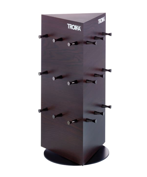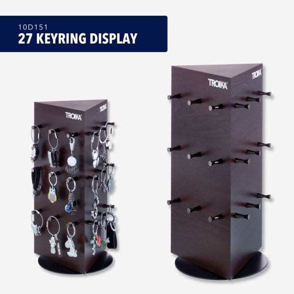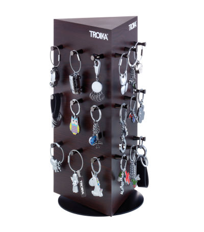Thekendisplay zur Präsentation von 27 Schlüsselanhängern, drehbar um 360°, Acryl, Holzoptik, matt, braun/schwarz