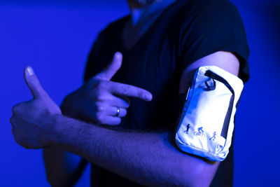 Die kleine Armtasche für Biker, Jogger, Walker … und für alle, die draußen nur das Nötigste dabeihaben wollen. Schön praktisch: zwei getrennte Fächer mit gummierten Reißverschlüssen für Smartphone, Schlüssel und Karten. Schön bequem: stufenlos verstellbarer elastischer Klettverschluss und gepolsterte Rückseite für mehr Tragekomfort. Schön sicher: Mit ihrem extrem reflektierenden Material fällt ARMLEUCHTER bei Wind, Wetter und Dämmerung garantiert auf. IPX4-geschützt aus robustem grau-schwarzen Polyester.