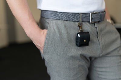 Das kleine Etui sorgt dafür, dass kabellose Kopfhörer immer dabei sind. Der praktische Karabiner macht das Anklicken am Schlüsselring oder an der Gürtelschlaufe ganz einfach. Aus echtem Leder mit Öffnung zum Andocken des Ladekabels. Das clevere Case schützt Apple AirPods (1. und 2. Generation) und andere kabellose Kopfhörer. Genau passend auch für eine zusammengefaltete Alltagsmaske.