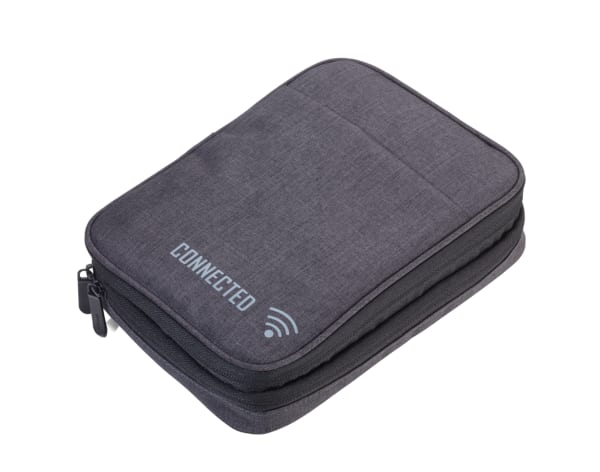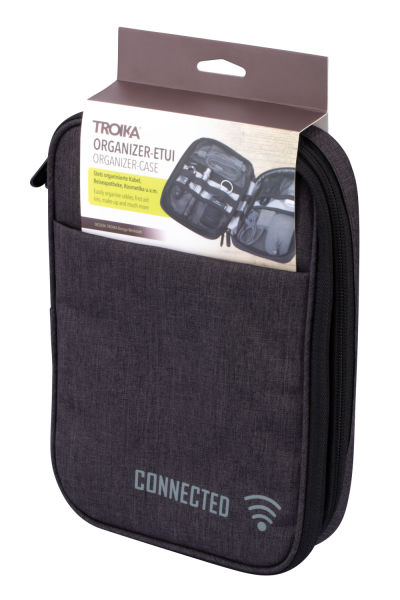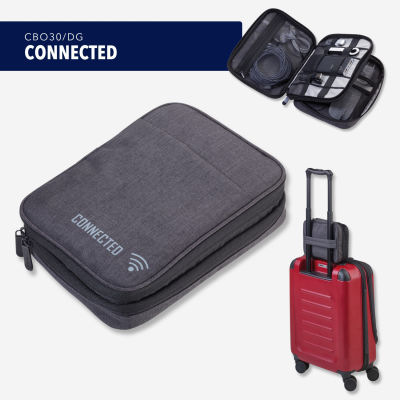 Mit CONNECTED stecken Sie Ihr digitales Leben locker in die Tasche. Handy, Maus, Earphones, Powerbank, Netzteil, Kabel, Adapter – in den zahlreichen sinnvoll aufgeteilten Fächern ist jede Menge Stauraum. Clevere Elastikbänder und Netze halten das Zubehör sicher am Platz. Extrapraktisch: die robuste Schlaufe zum Befestigen der Organizer-Tasche am Trolley. CONNECTED – denn Organisation ist das halbe Leben. Auch wenn es analog ist.